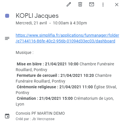 En plus d'afficher les convois il est également possible de créer un agenda pour les soins mais également pour les salons.